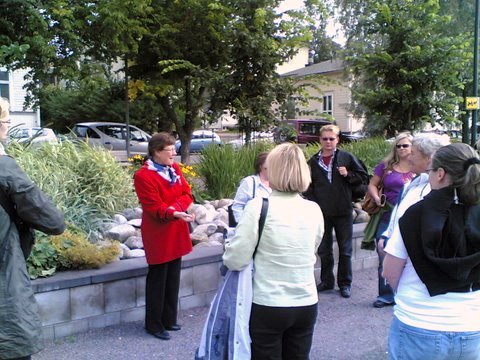 oppaan johdolla runsaan tunnin mittaiselle kiertokävelylle Porvoon